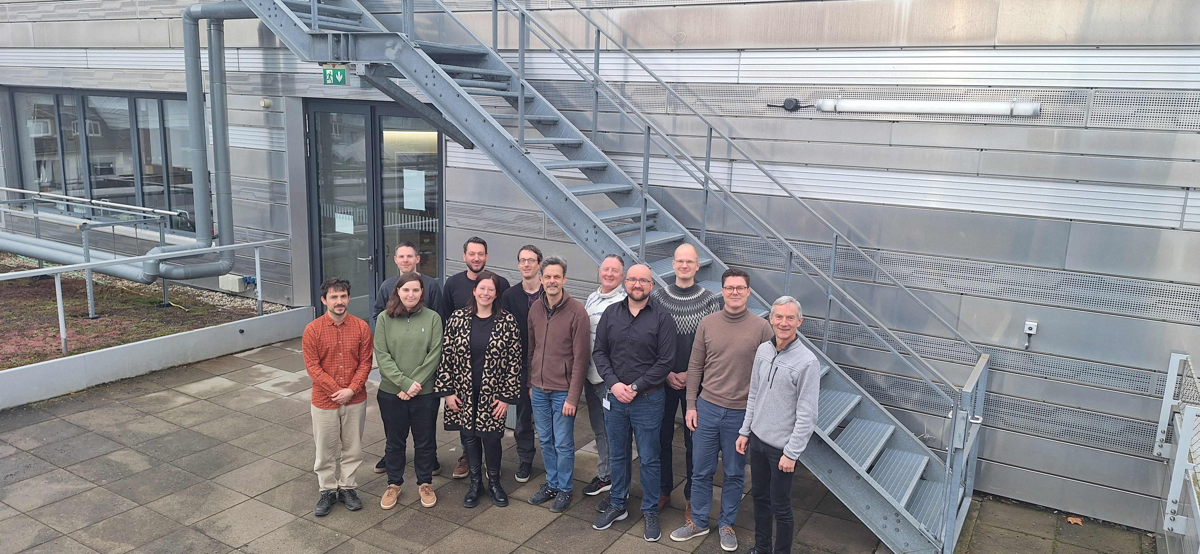 Projektbeteiligte der HSD (im Foto von rechts nach links): Mario Adam (ZIES), Stefan Graf (ZIES), Lars Telöken (MIREVI), Patrick Rathjen (ZIES), Christian Geiger (MIREVI), Matthias Neef (ZIES), Florian Huber (ZDD), Silke Tophoven (DIFA), Christian Steier (ZWEK), Isabell Bieber (DIFA), Julian Pollmann (ZDD), Marius Wohlfahrtstätter (ZIES).